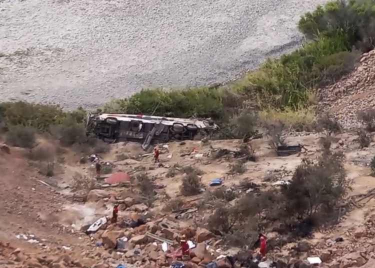 Al menos 37 muertos y 24 heridos causó este miércoles el accidente de un autobús que rodó por un abismo tras chocar con una camioneta en Arequipa, en el sur de Perú, informó a la AFP una autoridad del departamento regional de Salud.