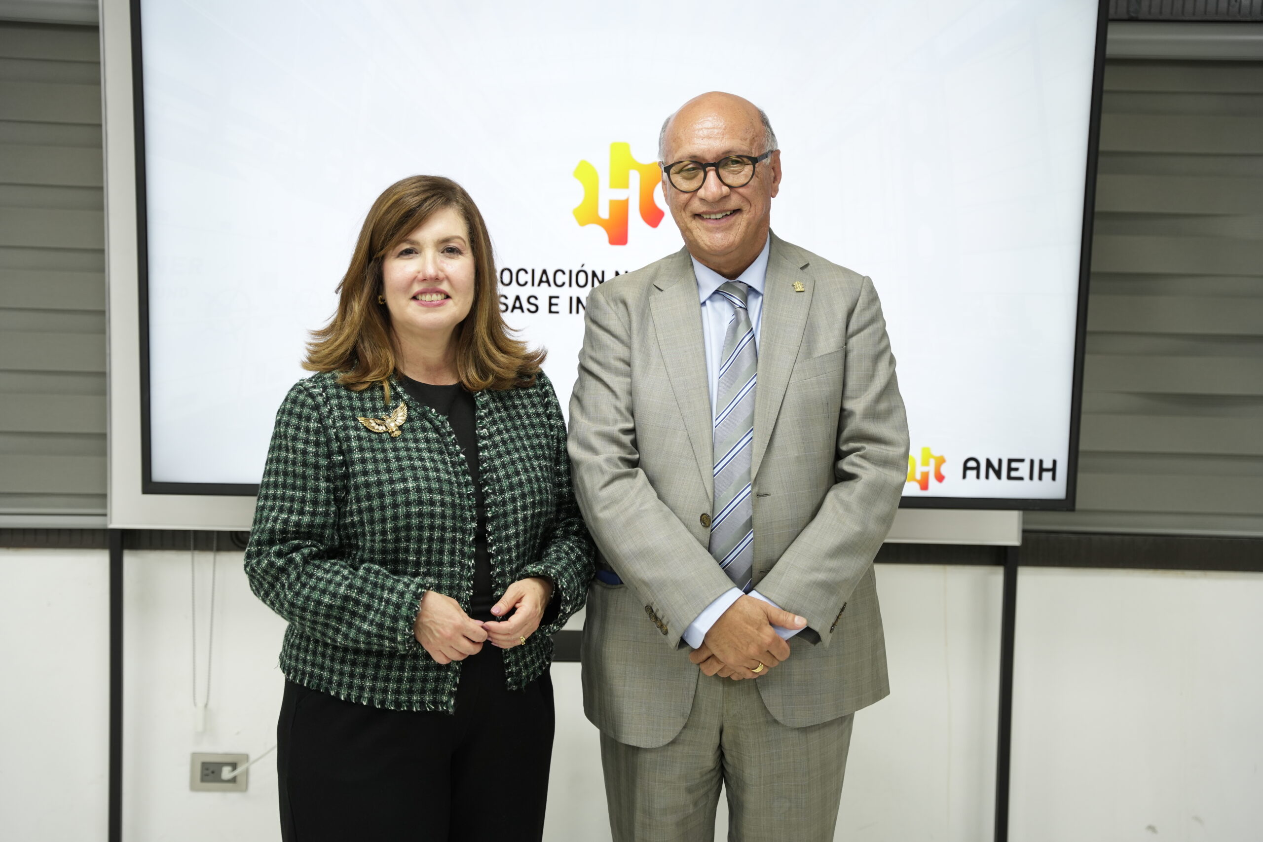 La presidenta de la Cámara Santo Domingo, Lucile Houellemont, y el presidente de ANEIH, Ángelo Viro