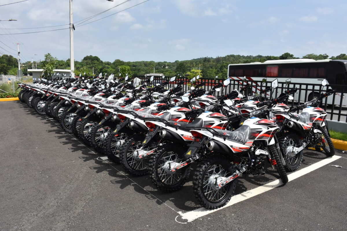 El acto de entrega de las motocicletas se llevó a cabo en el kilómetro 32 de la Autopista Duarte, y contó con la presencia del director de la Dirección General de Seguridad de Tránsito y Transporte Terrestre (Digesett), general Pascual Cruz Méndez, P.N.