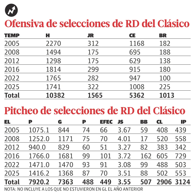 Con un acumulado de 322 jonrones, liderados por los 45 de Junior Caminero y los 43 de Juan Soto, este grupo supera ampliamente a la selección campeona de 2013, que llegó a la cita con apenas 175 cuadrangulares.