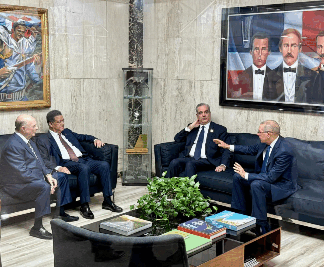 En la segunda parte de la reunión quedaron solamente el presidente Abinader y los ex presidentes Fernández Mejía y Medina.
