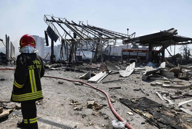 Agentes de policía y bomberos ya se encontraban en el lugar cuando se produjeron dos explosiones consecutivas, que generaron una fuerte onda expansiva. Esta onda rompió ventanas y proyectó escombros a cientos de metros del epicentro, además de provocar una alta columna de humo visible desde varios puntos de la capital italiana.