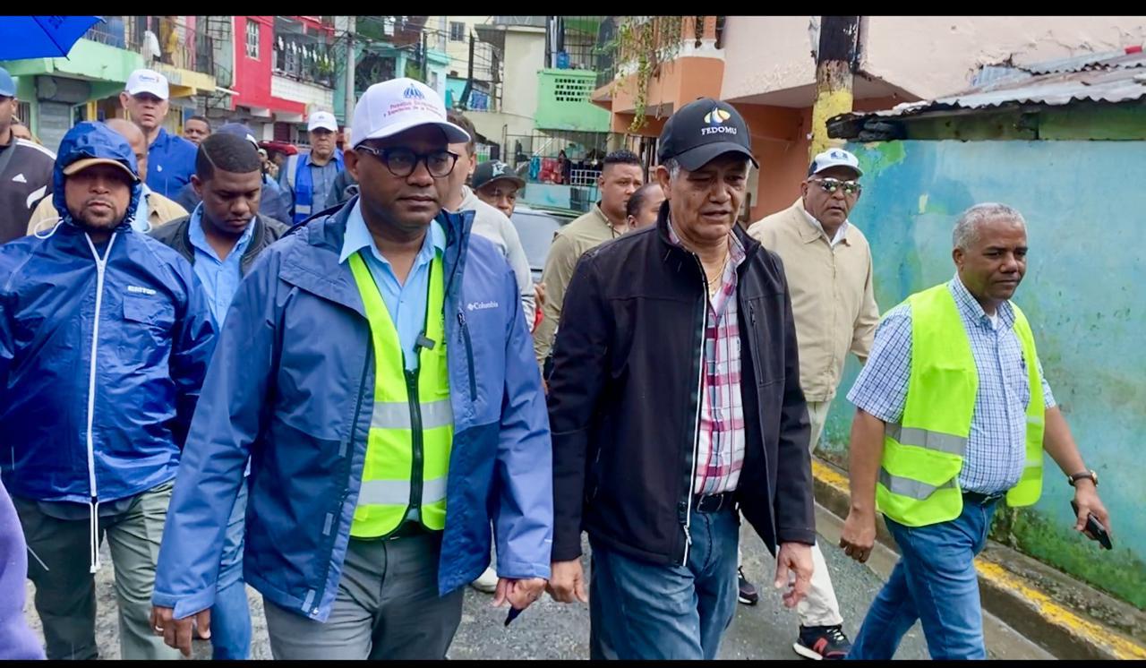 El director Propeep, durante el recorrido, además de Peña, estuvo acompañado de Miltha Pérez (La Popi), alcaldesa de La Guáyiga; José López, de Villa Linda, Palmarejo y funcionarios de la institución que dirige.