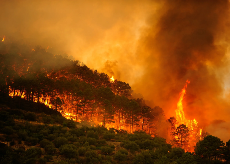 Bomberos luchan contra incendios forestales que arrasan más de 1,000 hectáreas en Galicia, España