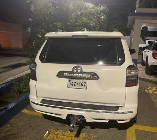 Valverde.- La Dirección Regional Noroeste de la Policía Nacional, informó que mediante un operativo que refleja la eficiencia de la estrategia preventiva, una patrulla de la Policía Preventiva logró interceptar un vehículo marca Toyota 4Runner, color blanco, placa No. G427461, que transitaba a alta velocidad y de manera sospechosa por la carretera Mao–Esperanza, en las inmediaciones del parquesito Duarte.