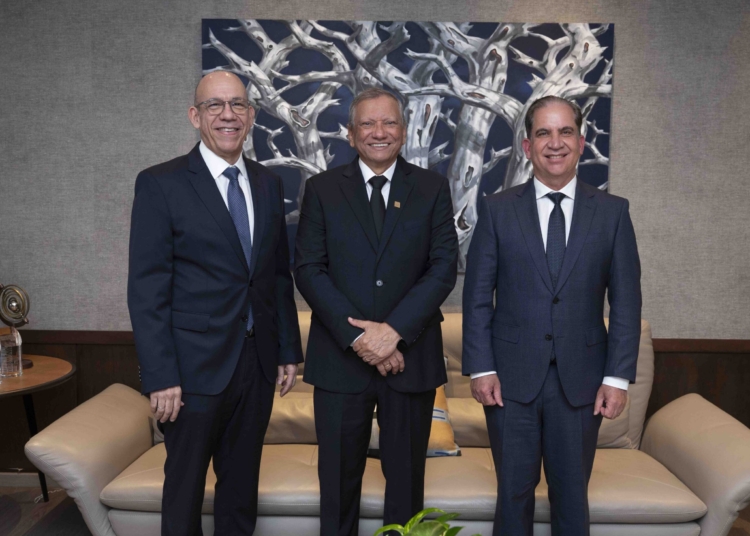 El presidente ejecutivo del Banco de Reservas, el doctor Leonardo Aguilera, recibió en su despacho a los representantes del Banco Santa Cruz en un encuentro que busca afianzar los lazos de colaboración y dinamizar el sector bancario de la República Dominicana.