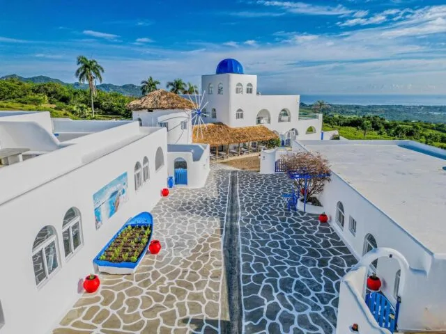Ubicado en la comunidad de El Cupey, a pocos minutos del centro de la ciudad, este espacio ofrece una experiencia única que transporta a sus visitantes a un ambiente inspirado en la arquitectura tradicional de Grecia, combinando armoniosamente los característicos tonos blancos y azules con el entorno natural de la zona montañosa de la Novia del Atlántico.