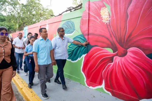 Polanco también inauguró en Santiago dos Paseos de los Colores, que resaltan el arte y las tradiciones de esa provincia. Uno de los murales fue realizado en la Escuela Primaria Emma Balaguer, en Santiago Oeste, con una extensión de 583.3 metros cuadrados, destacando elementos de la identidad local y nacional.