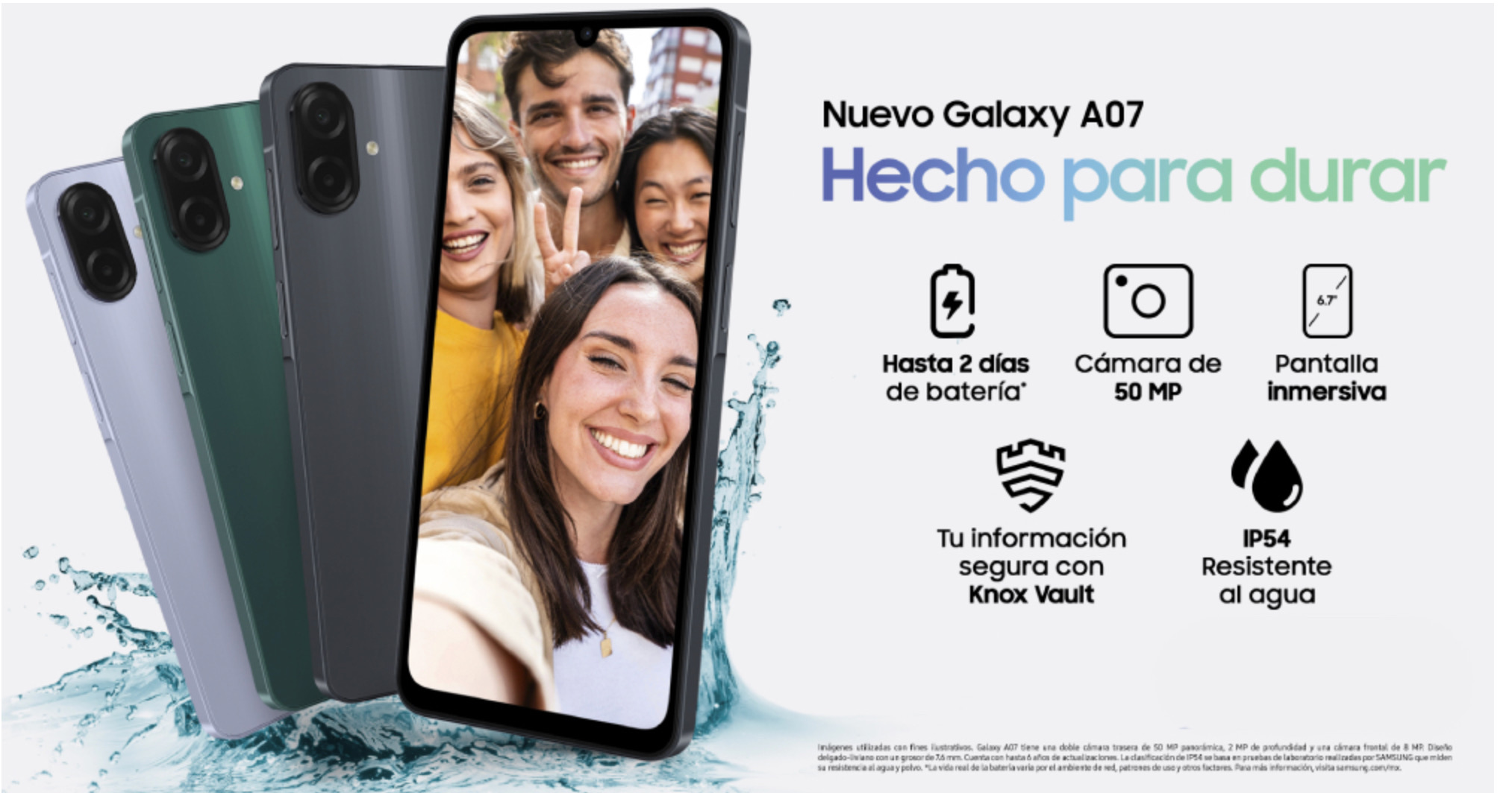 Samsung también amplió su portafolio con el lanzamiento del Galaxy A07, que cuenta con un procesador eficiente de 6 nm, diseño delgado, carga rápida de 25 W y ranura para tarjeta microSD.
