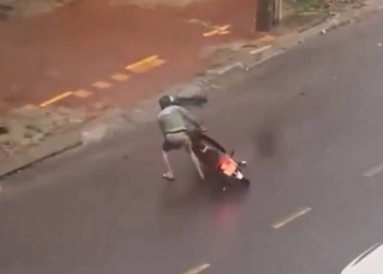 Vietnam.– Horas antes de que el tifón Kalmaegi tocara tierra en Vietnam, un video captó la dramática lucha de un hombre en medio de los fuertes vientos que azotaron la provincia de Dak Lak. En la grabación se observa cómo el individuo abandona su motocicleta en su intento por ponerse a resguardo, pero cae vencido por la fuerza del fenómeno.