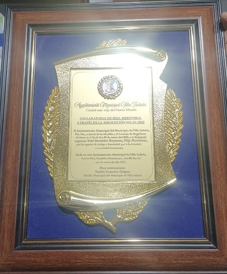En un emotivo acto celebrado en las instalaciones de la Alcaldía del municipio de Villa Isabela, provincia Puerto Plata, el Concejo de Regidores y el Alcalde Municipal Ruddy Leandro Gómez, en compañía de varios regidores y del Inspector de la Policía Nacional en el municipio, entregaron sendas placas de reconocimiento, declarando como hijos meritorios, huéspedes distinguidos y le entregaron las llaves de la ciudad a varios munícipes de la comunidad por sus trayectorias ejemplares, profesionales, laborales y aportes a la comunidad de Villa Isabela.